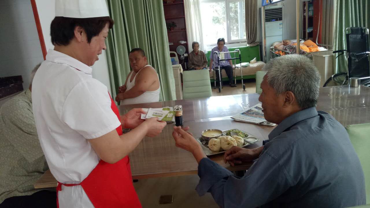 为解决周边社区老年人就餐困难,中心设立老人厨房、助老餐厅,并配备专业厨师制作符合老年人口味和营养需求的饭食。主要服务周边杏花村社区、峰泉社区、前进社区、西门外社区等60周岁以上老年人;对低保人员、老党员、生活困难老人及百岁老人提供优惠价格的助餐服务,对有特殊困难的老年人免费送餐。老年人可来养老中心就餐,也可以领回家就餐,对行动不便的老年人中心还提供送餐上门服务。